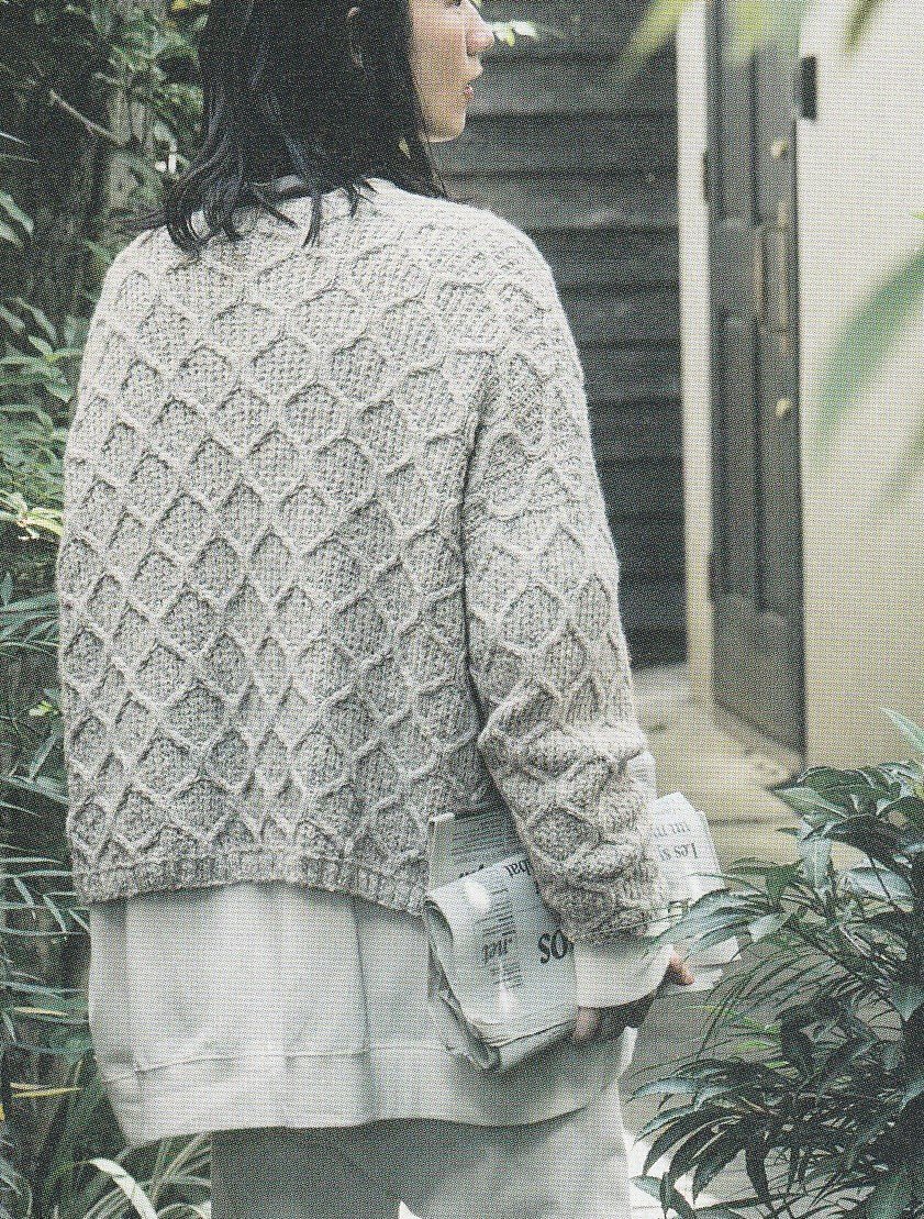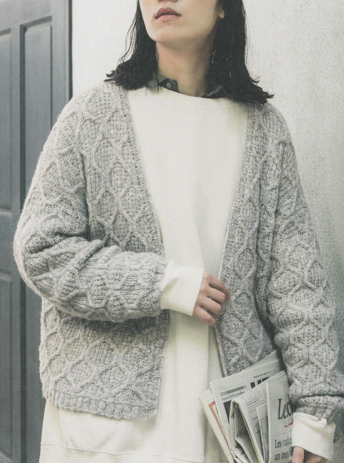 ≪人気作品毛糸・編み図パック≫ヘキサゴン柄のカーディガン【ソノモノロイヤルアルパカ】