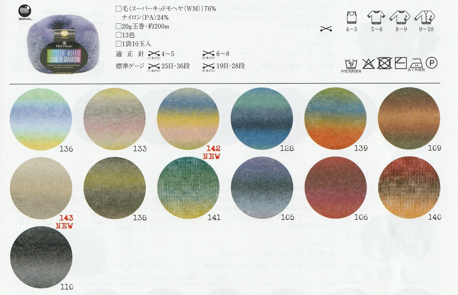[品質] 毛(スーパーキッドモヘヤ)76%・ナイロン24%